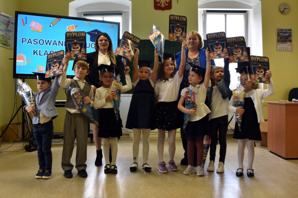 . Podczas uroczystości po wspólnym odśpiewaniu Mazurka Dąbrowskiego nasi starsi uczniowie podkreślili znaczenie nauki, docenili pracę nauczycieli i wszystkich, którzy przyczyniają się do kształcenia i wychowania młodego pokolenia. Następnie uwagę poświęcono pasowaniu klasy I. Po występie artystycznym z radością w obecności rodziców, przyjęliśmy najmłodszych uczniów do grona społeczności szkolnej. Po zakończeniu pasowania przez Panią Dyrektor była również okazja do wspólnych zdjęć. Minione wydarzenie z pewnością na długo pozostanie w pamięci dzieci i ich bliskich. ![]()